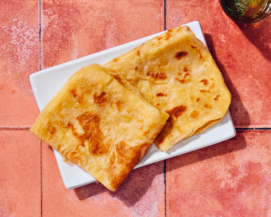 Délicieuse galette feuilletée traditionnelle, préparée à la main et légèrement dorée à la poêle avec garniture au choix.
