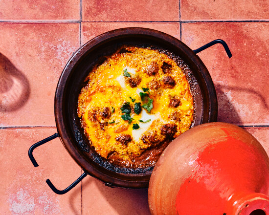 Boulettes de kefta savoureuses dans un tajine traditionnel, mijoté avec des épices pour une expérience riche et aromatique.