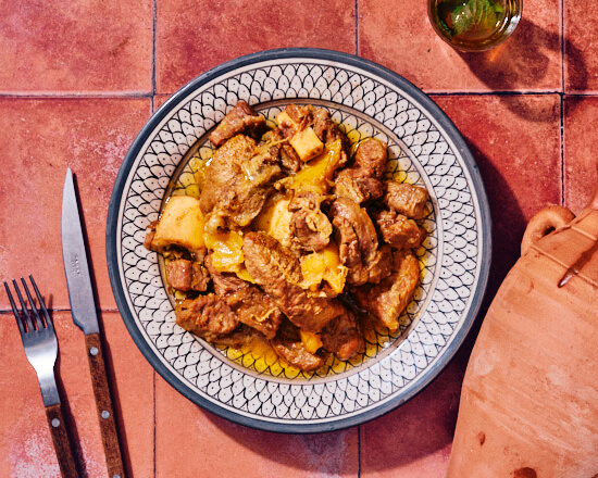 Morceaux de viande mijotés avec des pruneaux et des amandes, alliance du sucré salé à la maghrébine.